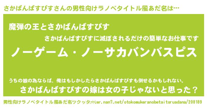 | 女子向けラノベタイトル風あだ名 | 『死神さかばんばすぴすの再婚』 |