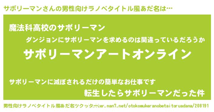 | 胡散臭い通販商品みたいなあだ名 | 『億万長者になれる水晶球…その名も「サボリーマン」』 |