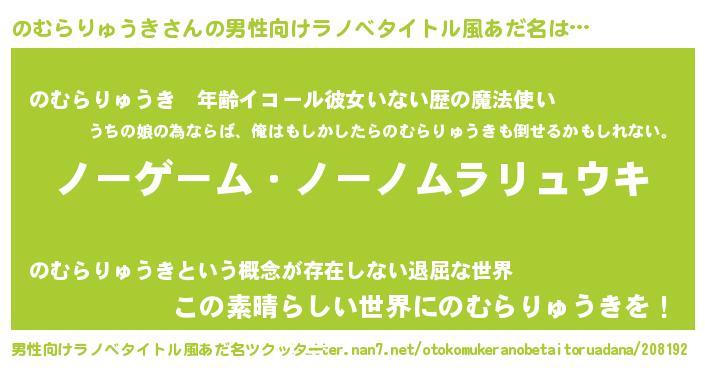 | 女子向けラノベタイトル風あだ名 | 『死神のむらりゅうきの再婚』 |