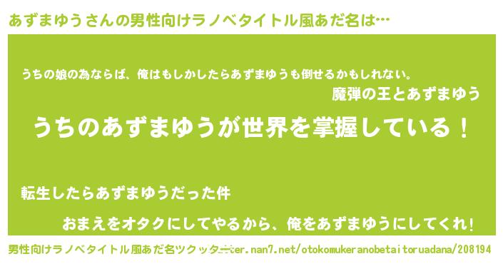 | 胡散臭い通販商品みたいなあだ名 | 『運命の人と巡り会える高級そうな壺…その名も「あずまゆう」』 |