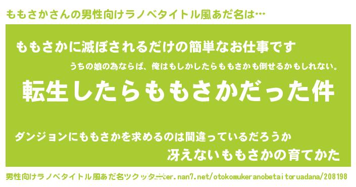 | 胡散臭い通販商品みたいなあだ名 | 『世界が平和になる高級そうな絵画…その名も「ももさか」』 |