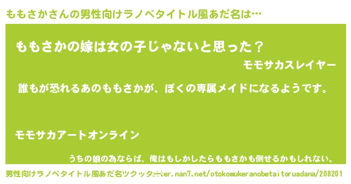 | 女子向けラノベタイトル風あだ名 | 『異世界でカフェももさかを開店しました。』 |
