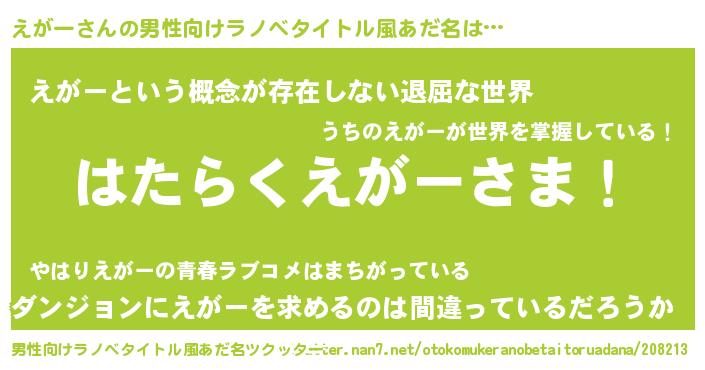 | 意味不明あだ名 | 『永久保存えがー』『えがーフォーエバー』 |