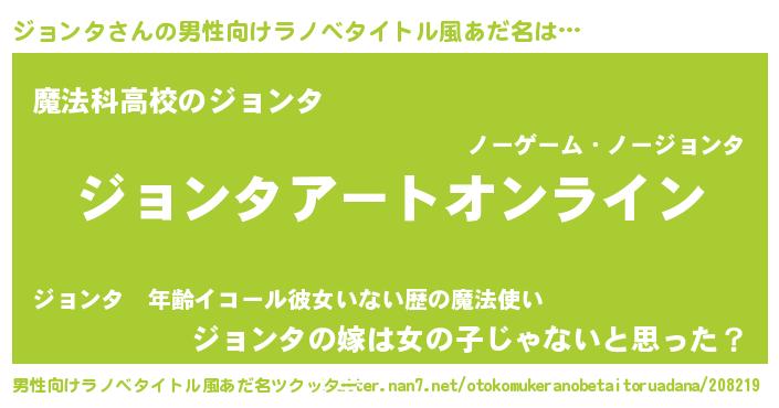 | 女子向けラノベタイトル風あだ名 | 『誰かこのジョンタを説明してください! ~契約から始まるウェディング~』 |