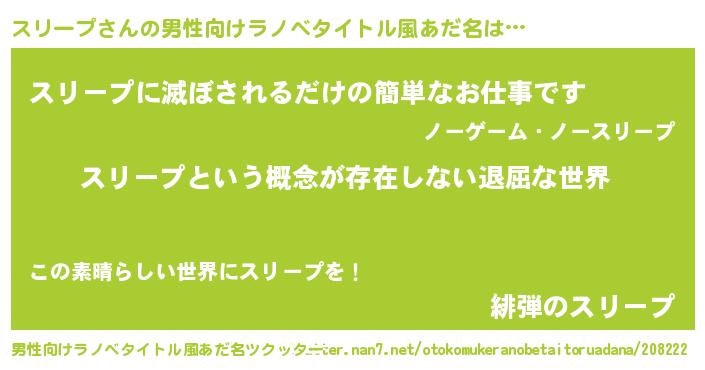 スリープさんの男性向けラノベタイトル風あだ名をツクッター!