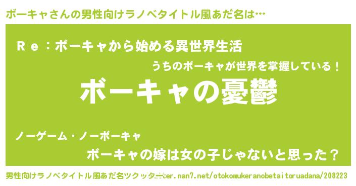 | ヒーロー風カッコイイあだ名 | 『スーパーボーキャ』『究極戦士ボーキャ』 |