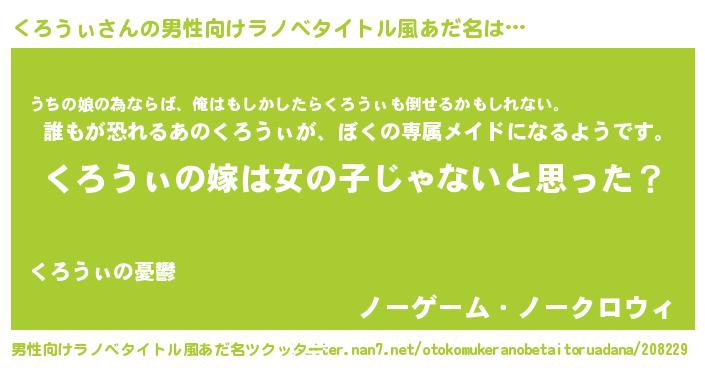| ヒーロー風カッコイイあだ名 | 『銀牙騎士クロ』『ウルトラくろうぃマン』 |