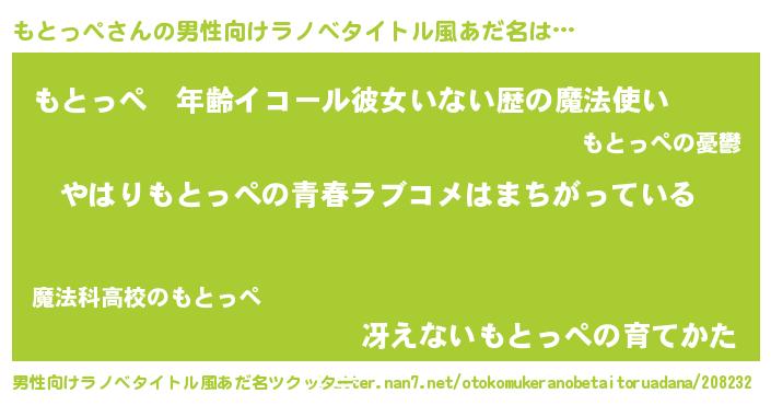 | 女子向けラノベタイトル風あだ名 | 『もとっぺの雑貨屋さん』 |