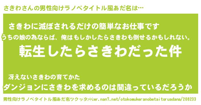 | 意味不明あだ名 | 『なめこ科さきわ属』『永久保存さきわ』 |