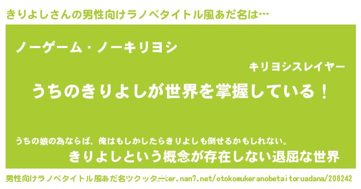 | ヒーロー風カッコイイあだ名 | 『慈愛の使者きりよし』『ネオキリヨシ』 |