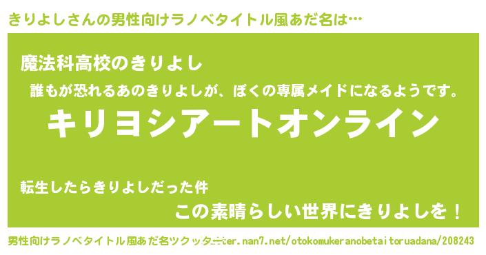 | ヒーロー風カッコイイあだ名 | 『スーパーキリヨシ』『仮面キリダー』 |