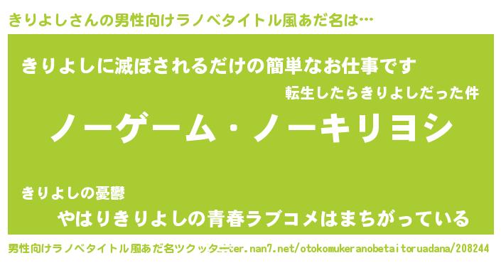 | ファンタジー風あだ名 | 『クインキット』『エターナルキリヨシー』 |