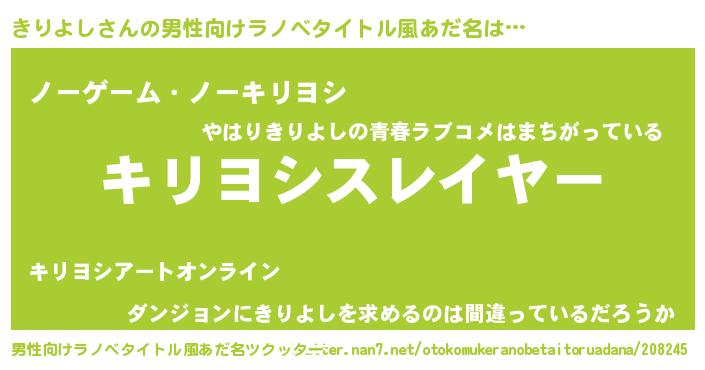 | ヒーロー風カッコイイあだ名 | 『友情の使者きりよし』『炎刃騎士キリ』 |