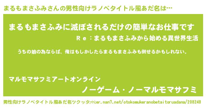 | 女子向けラノベタイトル風あだ名 | 『まるもまさふみの婚約者』 |