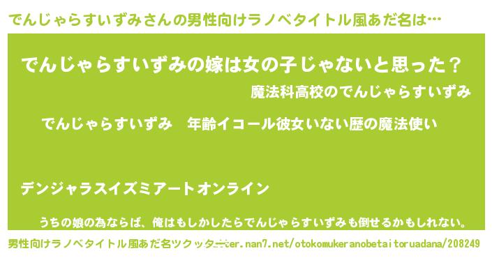 | 女子向けラノベタイトル風あだ名 | 『でんじゃらすいずみの玉の輿計画!』 |