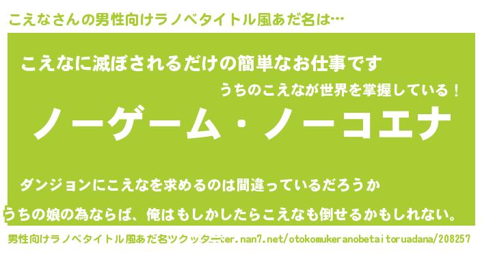 | 女子向けラノベタイトル風あだ名 | 『こえな恋絵巻』『横柄こえなと宰相陛下』 |