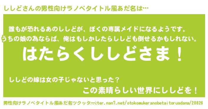 | ヘコむあだ名 | 『ししど(苦笑)』『なまこ酢』 |