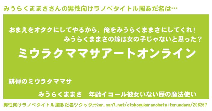 | 女子向けラノベタイトル風あだ名 | 『みうらくままさ姫と円卓の騎士』 |