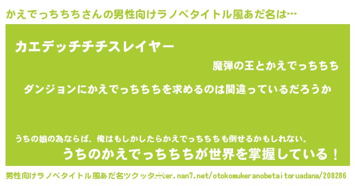 | 女子向けラノベタイトル風あだ名 | 『かえでっちちちの卵を拾いまして』 |