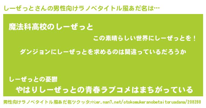 | 女子向けラノベタイトル風あだ名 | 『しーぜっとは平凡を望む』 |