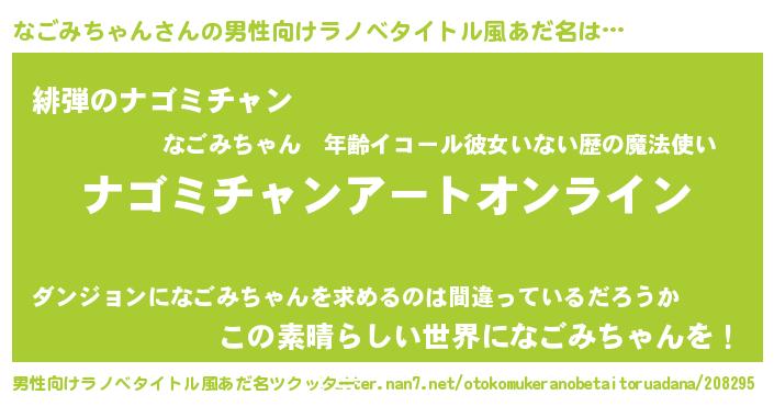 | 胡散臭い通販商品みたいなあだ名 | 『億万長者になれるブレスレット…その名も「なごみちゃん」』 |
