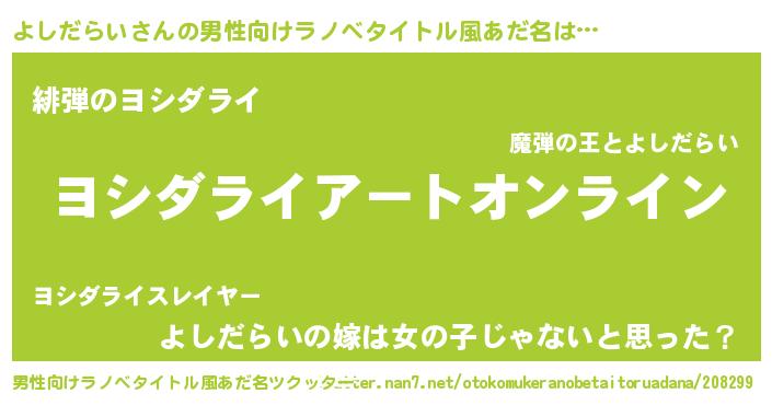 | 女子向けラノベタイトル風あだ名 | 『よしだらい姫と円卓の騎士』 |