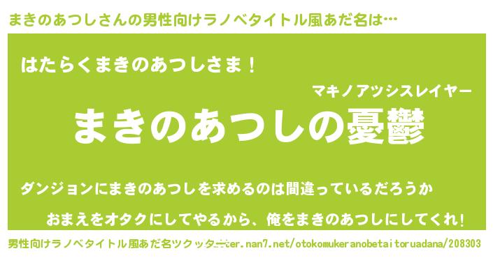 | 女子向けラノベタイトル風あだ名 | 『(仮)まきのあつしのやんごとなき事情』 |