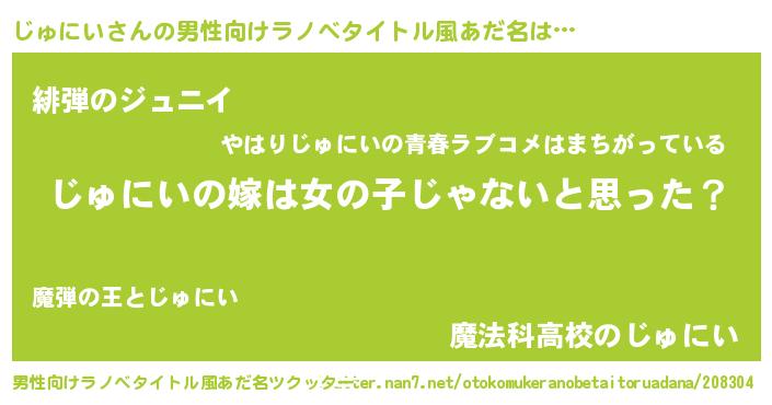 | 胡散臭い通販商品みたいなあだ名 | 『全米が絶賛したサプリメント…その名も「じゅにい」』 |