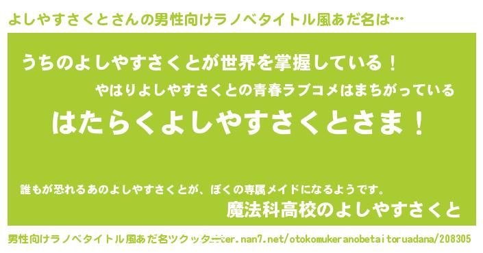 | 意味不明あだ名 | 『自称よしやすさくと』 |