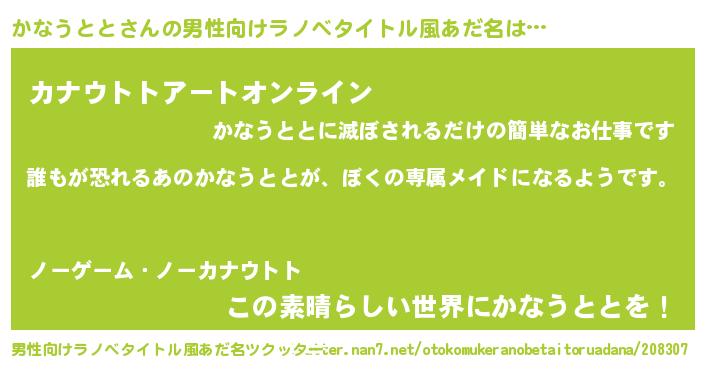 | 胡散臭い通販商品みたいなあだ名 | 『前代未聞の健康食品…その名も「かなうとと」』 |