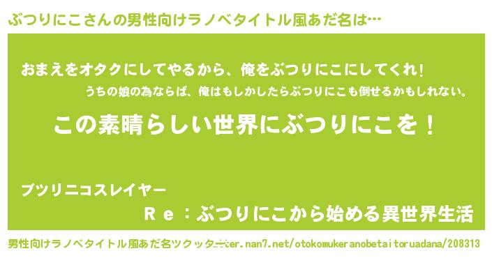 | 意味不明あだ名 | 『住所不定無職ぶつりにこ(1歳)』 |