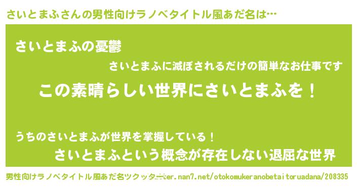 | 女子向けラノベタイトル風あだ名 | 『乙女ゲームの破滅フラグしかない悪役さいとまふに転生してしまった…』 |