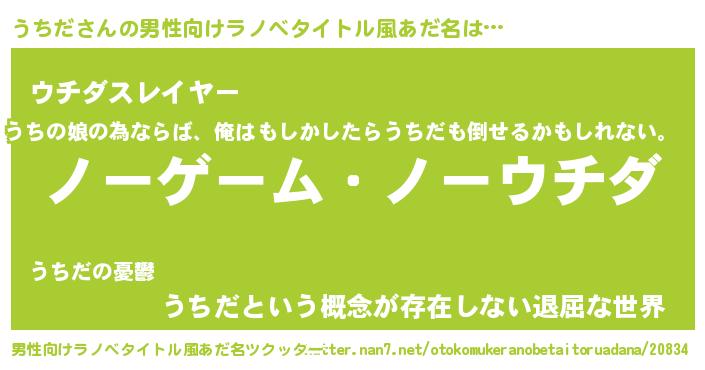 | 女子向けラノベタイトル風あだ名 | 『死神うちだの再婚』『うちだの婚約者』 |