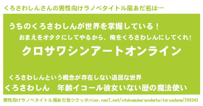 | 胡散臭い通販商品みたいなあだ名 | 『億万長者になれる霊験あらたかなお札…その名も「くろさわしん」』 |