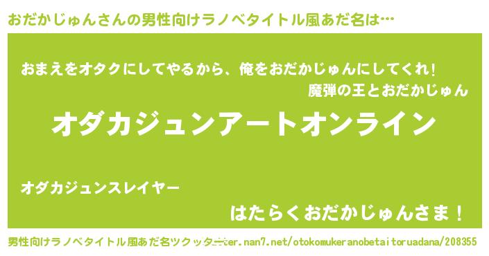 | 胡散臭い通販商品みたいなあだ名 | 『億万長者になれる霊験あらたかなお札…その名も「おだかじゅん」』 |