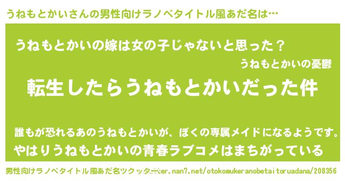 | 肩書あだ名 | 『うねもとかい中将』『うねもとかいCEO』 |