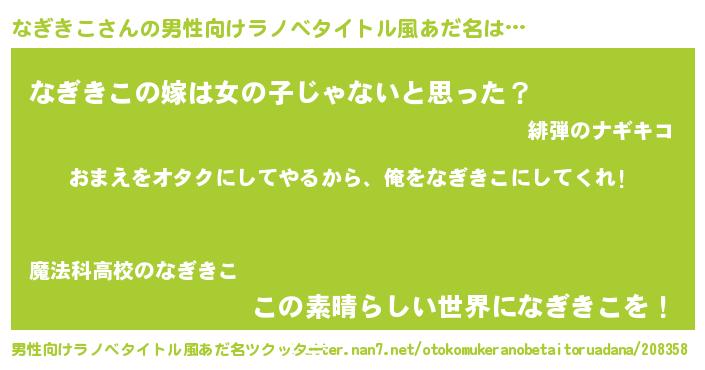 | 女子向けラノベタイトル風あだ名 | 『なぎきこ夫妻のなれそめ』 |