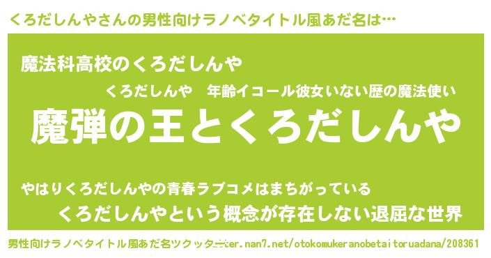 | 女子向けラノベタイトル風あだ名 | 『くろだしんやが死なない童話 林檎のくろだしんやの診療簿』 |