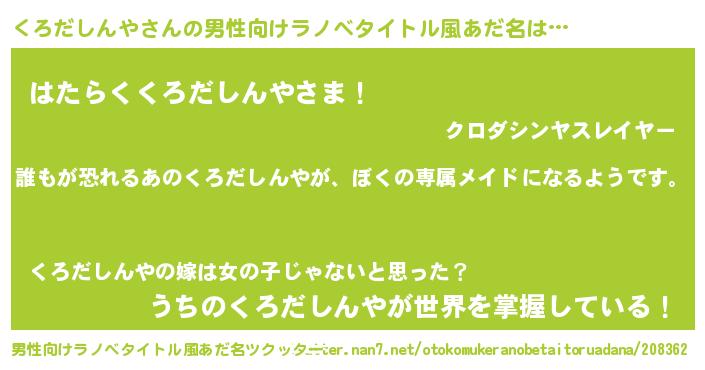 | 女子向けラノベタイトル風あだ名 | 『異世界でカフェくろだしんやを開店しました。』 |