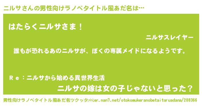 | ヘコむあだ名 | 『ニルサ(遠い目)』『ニルっちょ』 |
