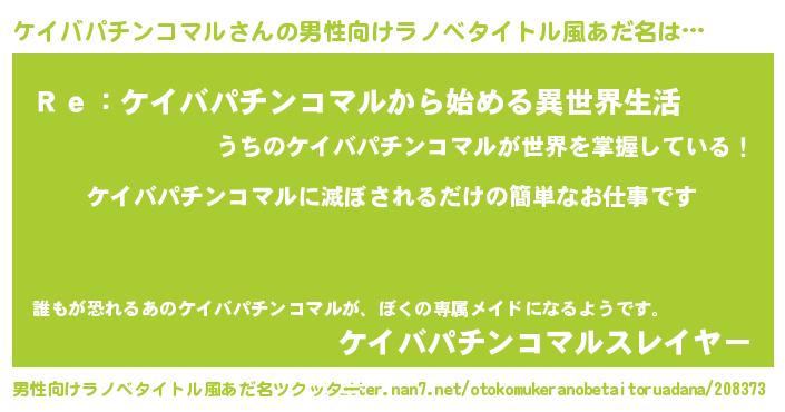 | 意味不明あだ名 | 『自称ケイバパチンコマル』 |