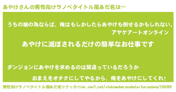| 胡散臭い通販商品みたいなあだ名 | 『世界が平和になる高級そうな壺…その名も「あやけ」』 |