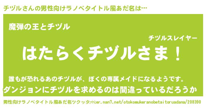 | 意味不明あだ名 | 『住所不定無職チヅル(85歳)』『自称チヅル』 |
