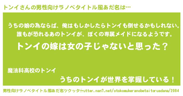 | 胡散臭い通販商品みたいなあだ名 | 『全米が絶賛したサプリメント…その名も「トンイ」』 |