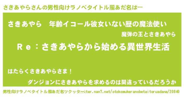 | 意味不明あだ名 | 『自称さきあやら』 |