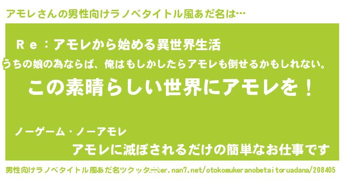 | 意味不明あだ名 | 『住所不定無職アモレ(53歳)』『自称アモレ』 |