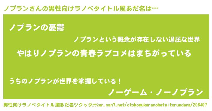 | ファンタジー風あだ名 | 『エターナルノプランー』『ノプフェル』 |