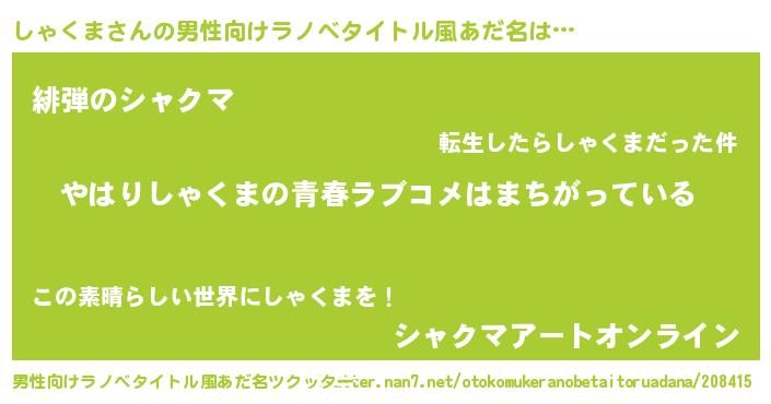 | 女子向けラノベタイトル風あだ名 | 『しゃくまの雑貨屋さん』 |