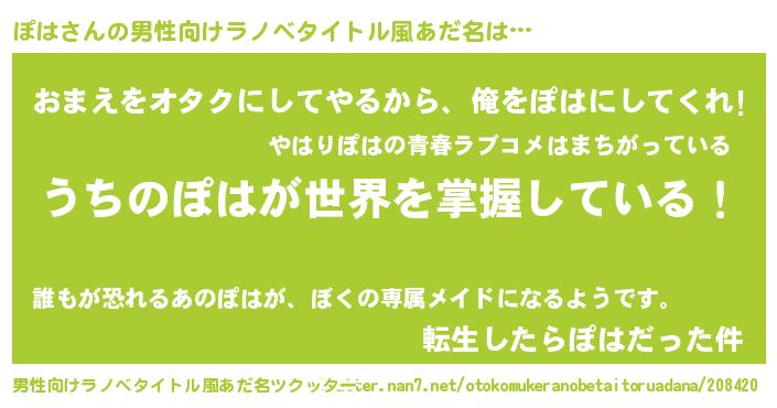 | 女子向けラノベタイトル風あだ名 | 『男装ぽはの憂鬱な任務』 |