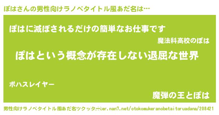 | 意味不明あだ名 | 『永久保存ぽは』『住所不定無職ぽは(84歳)』 |